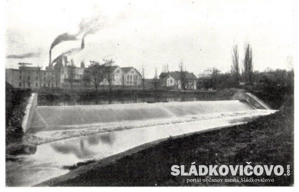 Na fotografiách z roku 1913 je sústava vodných diel na Dudváhu pred cukrovarom. Na prvej fotografii je starý zsilip – pohľad zhora, na druhej pohľad zdola.